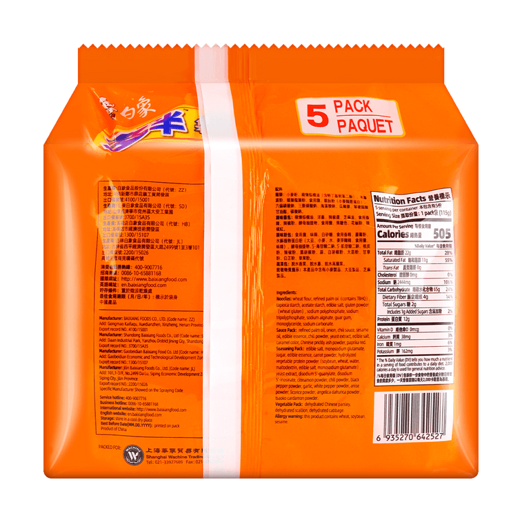 Baixiang Dabanbao Spicy Beef Noodles 5-pack 115g*5