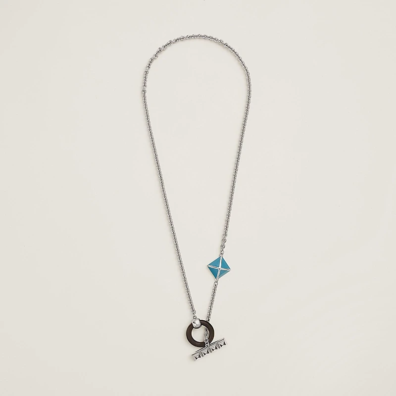 Horn and metal necklace, palladium-plated hardware.
