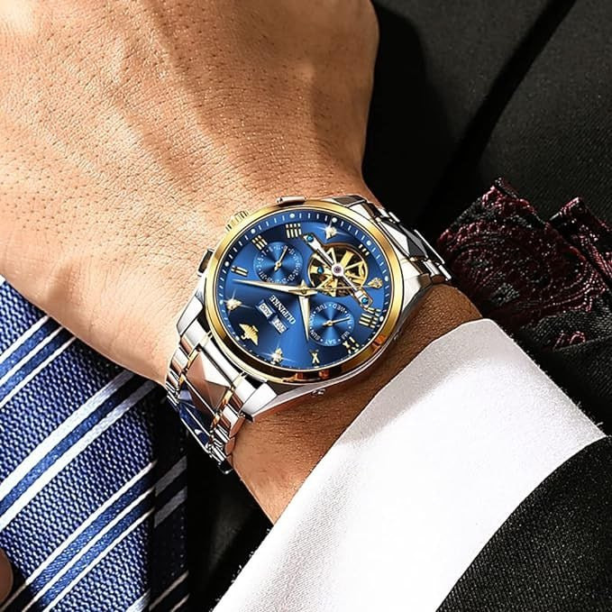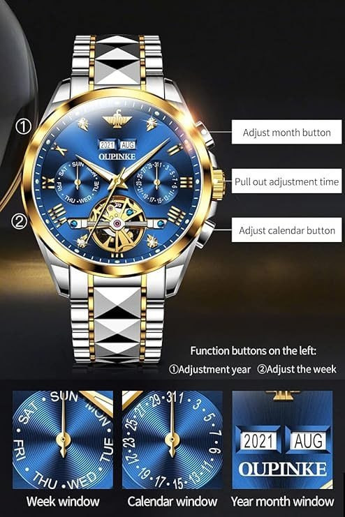 OUPINKE Mens Automatic Watches Diamond Skeleton Self Winding Luxury Dress Wrist Watch Sapphire Crystal Tungsten Steel Luminous Waterproof
