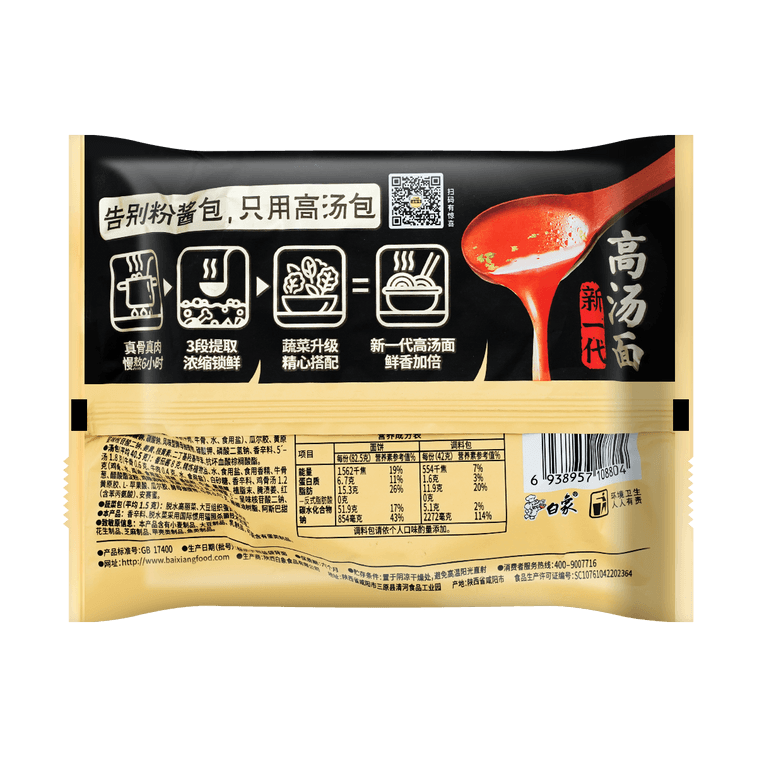 Baixiang Instant Noodles with Good Soup Tomato and Beef Brisket Soup Noodles Bag 124.5g [Selected Soup Noodles]