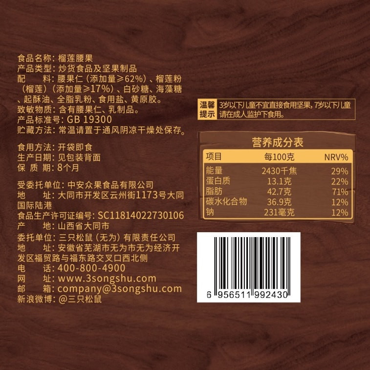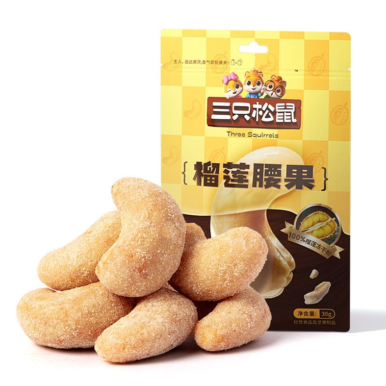 China Three Squirrels Durian Cashew Nuts Original Roasted Nuts 30g/bag