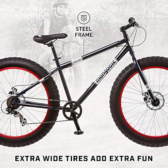 Mongoose Dolomite Mens and Womens Fat Tire Mountain Bike, 26-Inch Wheels, 4-Inch Wide Knobby Tires, 7-Speed, Adult Steel Frame, Front and Rear Brakes