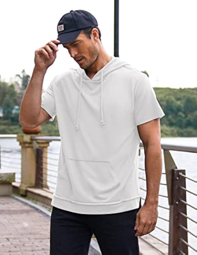 • Clothing Match - Short sleeve hoodie, loose fit design and solid color make the lightweight hoodie fit in every way. You can match casual trousers, cargo pants and jeans as daily wear. You can also pair them with shorts and go to the gym for fitness.