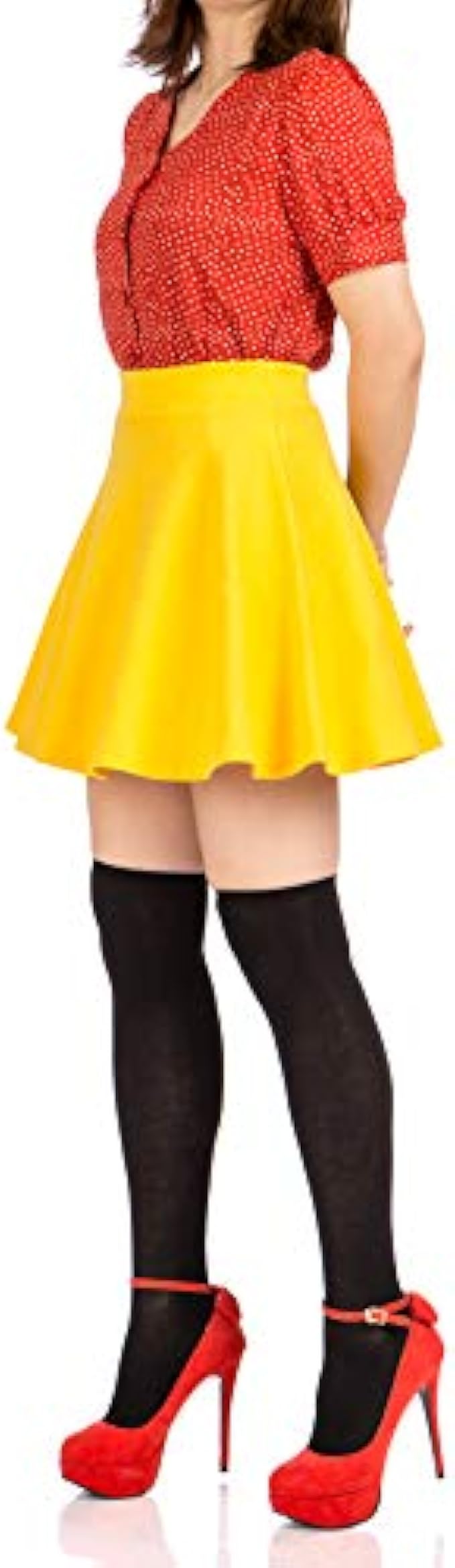 • Perfect for Various Occasions: With the solid color and the plain pattern, the basic skater skirt is suitable for any occasion. If you wear this full mini skirt with a blouse or shirt and a pair of pumps, you can make romantic styles. The flared mini skirt is also perfect with casual tops and sneakers. With a full lovely flow, the skater skirt is a wonderful skirt for dancing. Because there is a selection of various colors on this skirt, the skater skirt is great for a Halloween costume skirt.
