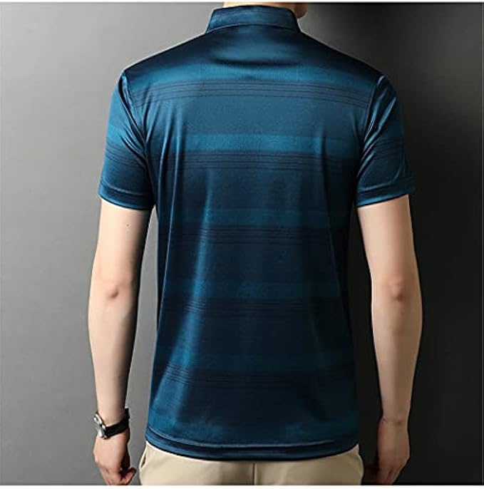 HNKDD Summer Fashion Striped Men's Short-Sleeved Pullover Lapel Half-Sleeved T-Shirt for Men (Color : E, Size : XL Code)